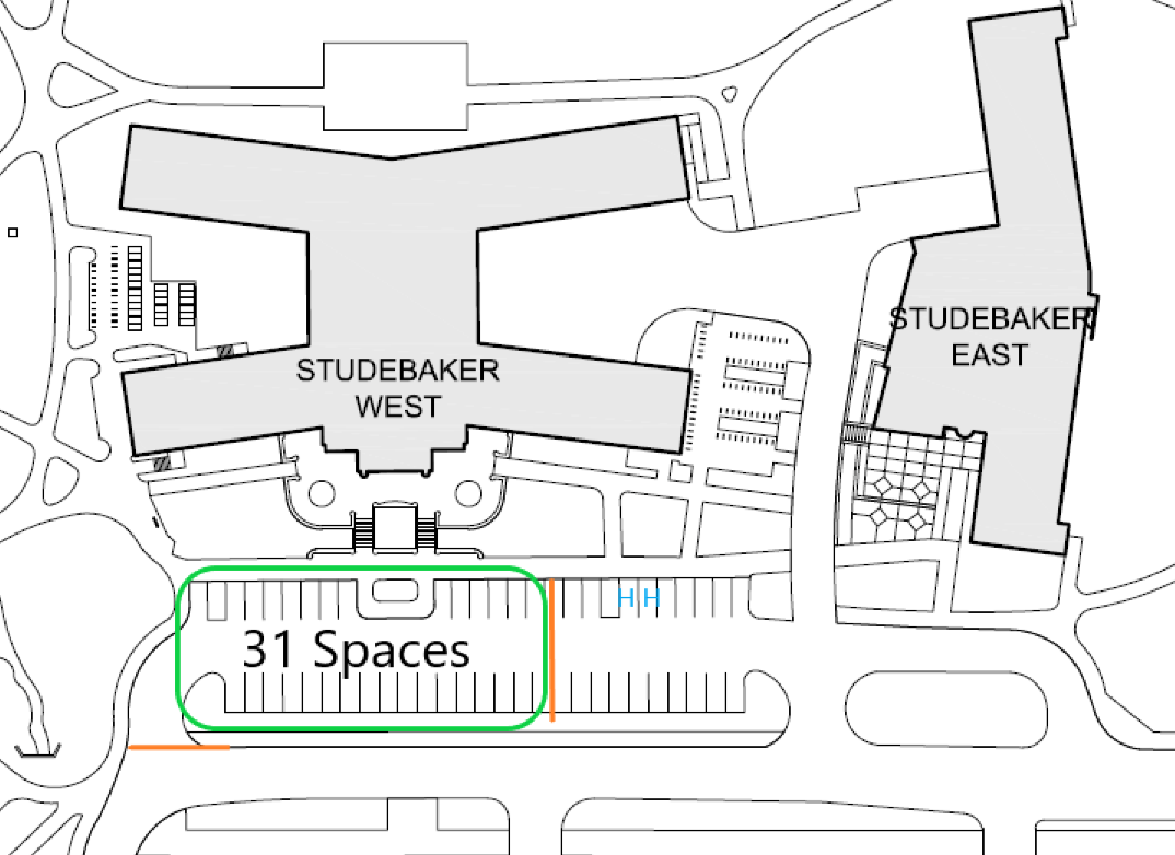 New York Parking Garage (R6) – Metered parking is located on the bottom floor of R6 with a pay station located at the west entrance and in the east stairwell.