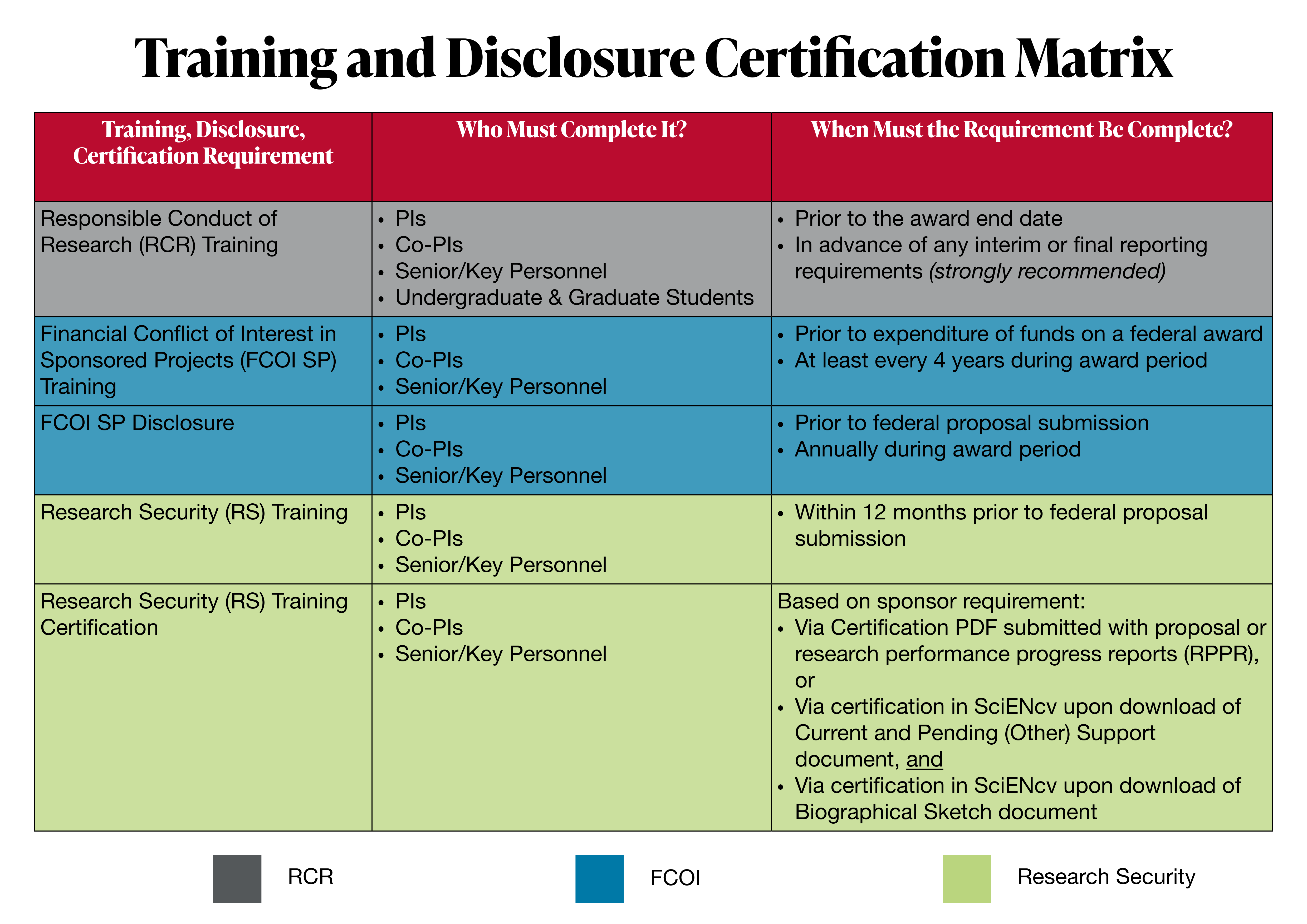 Trainings and Disclosure Requirements for Investigators of Federally Funded Proposals and Awards