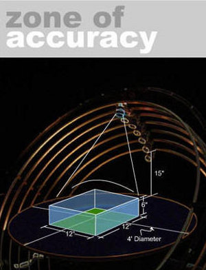 Which Heliodon to Use?" section for an explanation. The area within the model which can be studied at any given time will be a maximum of 12" wide x 12" long x 6" high. Sub-portions of larger models may be studied by placing a part of the model in the device's zone of accuracy. The table has a flat circular surface 4' in diameter. Models that are higher than 15" may encounter physical interference with the ring and lamp mechanisms.