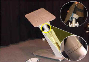 It is best to place the model on the table when it is in a relatively flat position. Rotate the Time-of-Day adjustment to approximately 12 noon. The table surface will likely be tilted towards the gated end of the room. Rotate the Time-of-Year adjustment to bring the table surface into a relatively flat orientation.