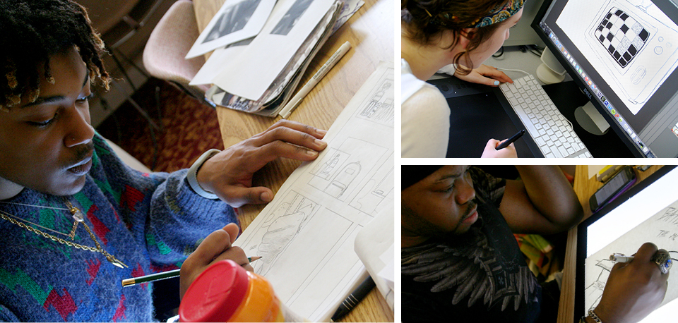 Jeff and his students used the medium of comic books to explore the intersection of religion and pop culture, examining how religious figures and concepts are represented in comic books and graphic novels. Applying what they learned, each of the students then produced their own original comic book - from scripting the story and laying out the panels to creating the artwork and inking the illustrations - which focused on significant religious topics and concepts. The seminar’s community partner Aw Yeah! Comics facilitated interactions between the students and industry professionals, bringing in comic book creators, scholars and artists to mentor the students and provide feedback on their work. In addition to compiling and publishing their collective comic books into a downloadable E-Book, the class presented their research in the 2015 Student Symposium, and participated as panel speakers at the Indianapolis Comic Con.