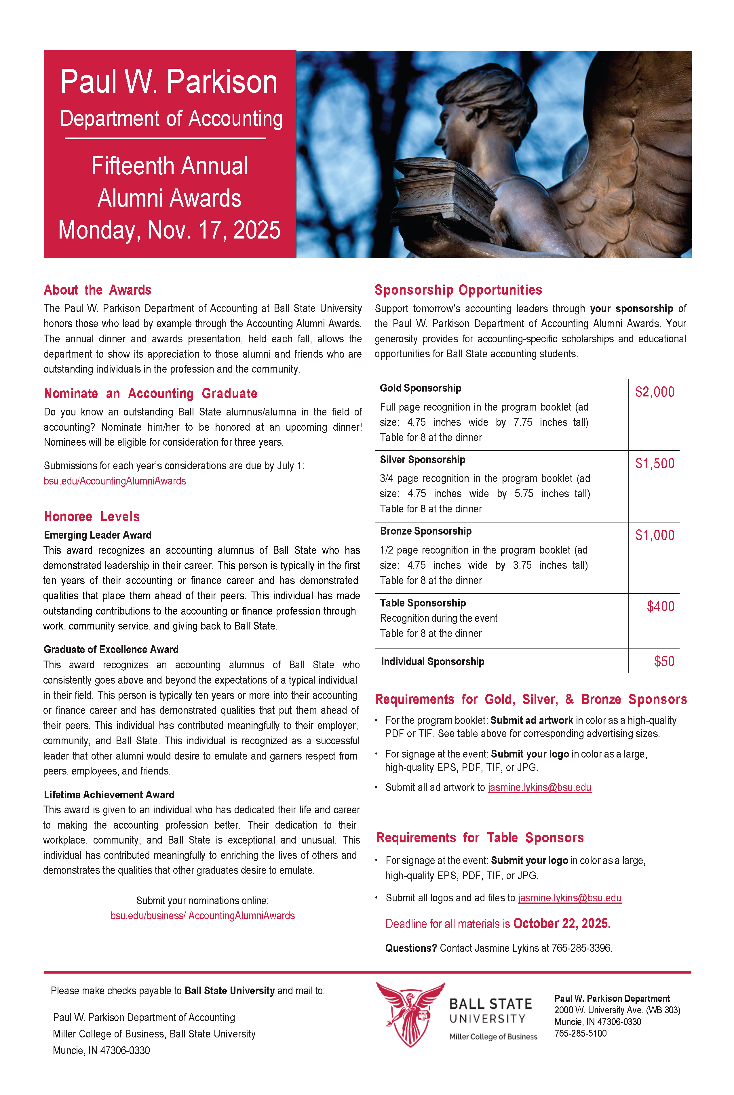The Parkison Department of Accounting honored ten outstanding alumni at the 13th annual Accounting Alumni Awards on May 1, 2023.