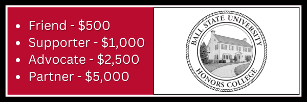 Donors who contribute $500 or more to this project will be recognized in the new space. Be part of our story and add your name to the pages of Honors College history by having your name or names engraved on a metallic book spine that will be added to our donor bookshelf. Those who give to the Honors College Expansion at the levels below will be recognized in the following way: