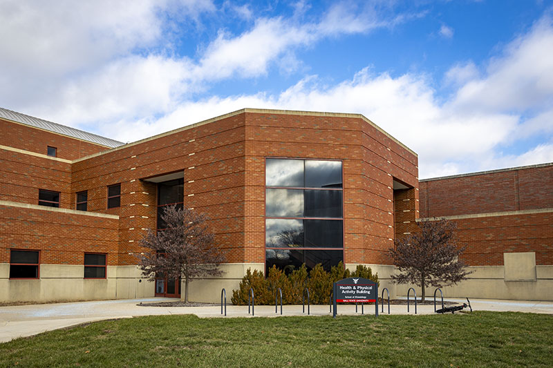 Completed in 1990, the Health and Physical Activity Building houses offices and classrooms affiliated with three Ball State programs: