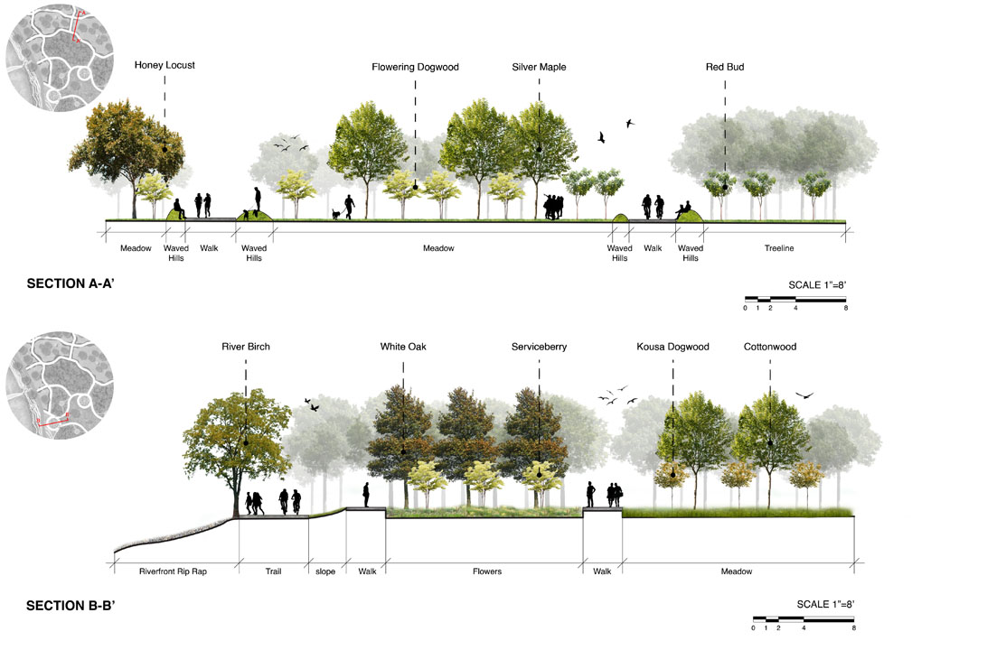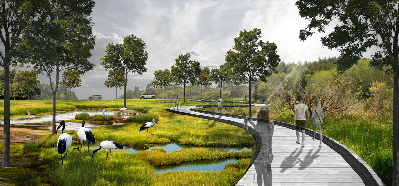 In the late 1800’s and early 1900’s the State of Indiana drained what was once the largest inland wetlands in the entire country: The Grand Kankakee Marsh. In doing so, they destroyed the natural landscape in favor of agricultural land, decimated native wildlife populations, and altered the functionality of the Kankakee River and its wetlands. The Kankakee River Revival Comprehensive Master Plan seeks to remedy the consequences suffered over a century ago, while also building a stronger, more resilient landscape for the future. This massive restoration and planning effort will serve both the users of the design and members of the nearby communities, while simultaneously strengthening habitat for native wildlife, building resiliency to annual flooding, and creating an identity for the area.