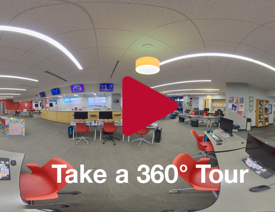 Managed by University Media Services, Studios A and B and the accompanying control rooms serve the entire Ball State community. Student-produced programs like SportsLink, Cardinal Sports Live, BSU Tonight, and Cardinal Compass regularly use these state-of-the-art studios for productions featuring digitally-generated virtual sets, as well as traditional practical sets. Ball State PBS broadcasts and immersive class projects also make use of the chroma-keyable green cycloramas in the spacious Studio A (over 40 feet wide), and the more modest Studio B (28 feet wide). Even more green is the full-LED lighting grid, which consumes a fraction of the energy needed for traditional tungsten lighting.