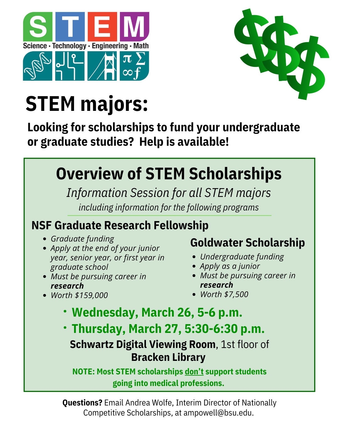 The Office of Nationally Competitive Scholarships will be holding information sessions on STEM scholarships.