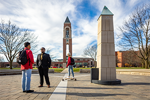 The Peace Plaza is located west of the Whitinger Business Building near University Green. The purpose of the Peace Plaza is to promote a message of peace and inclusive excellence and to serve as a memorial to all who have fallen victim to violence worldwide. Attendees can park in the R5 lot near the Architecture Building and the Whitinger Business Building.