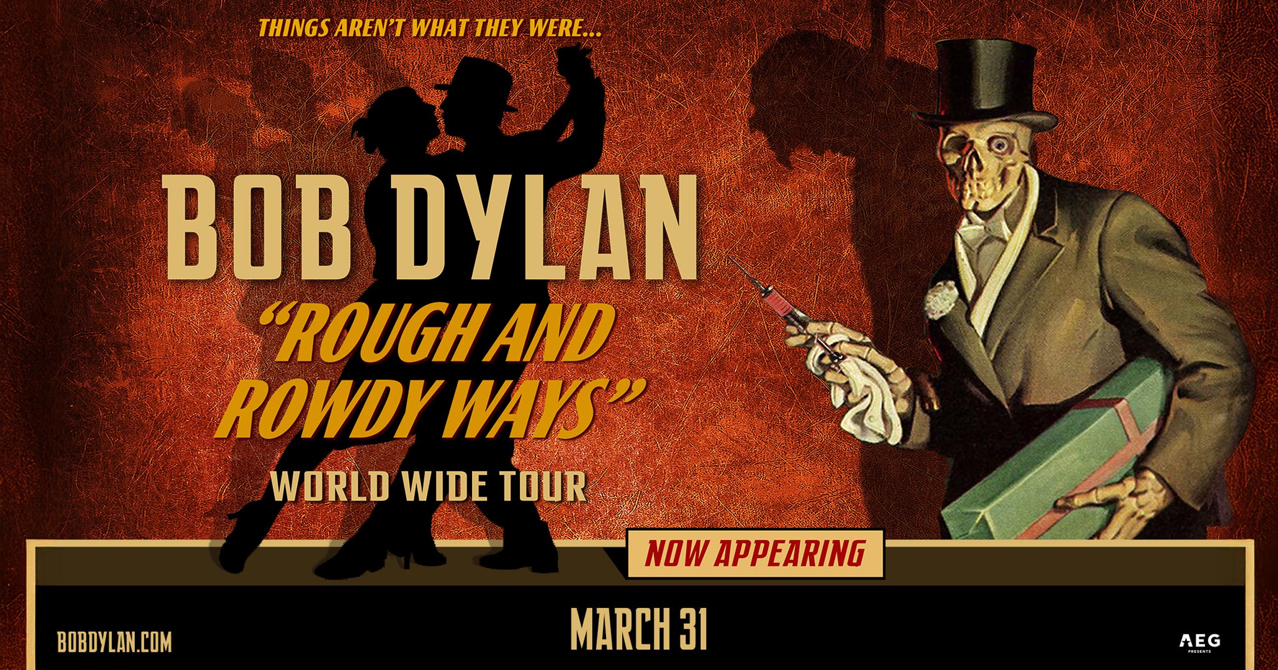 Ball State University will present the Bob Dylan Rough and Rowdy Ways World Wide Tour at Emens Auditorium at 8 p.m. on Tuesday, March 31, 2026.