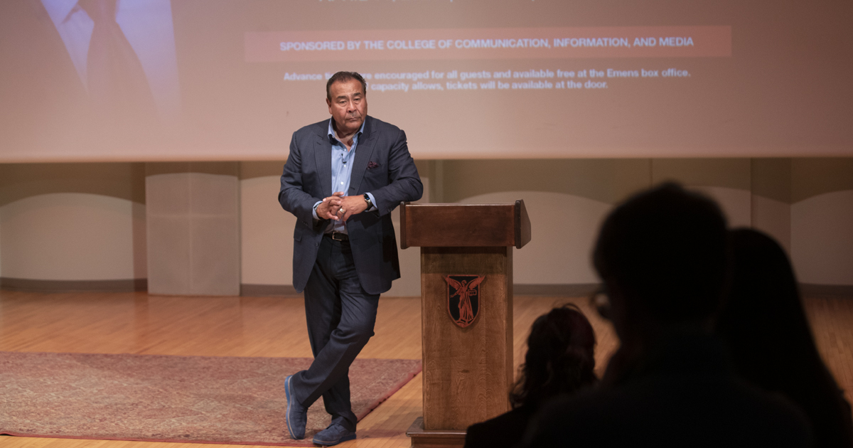 John Quiñones visited Ball State's campus on April 11, 2022, and engaged with students in workshops within the College of Communication, Information, and Media (CCIM). Mr. Quiñones was gracious with his time and visited a local elementary school while in Muncie.