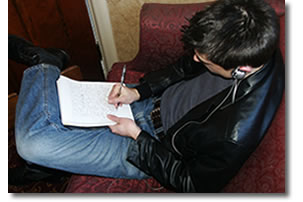 | Dustin Spence at the Virginia Ball Center writing an early draft of the play.