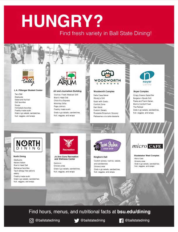 Request to reserve a table in one of Ball State's busiest student areas. Tables are commonly placed in a dining area, but they can be displayed throughout campus to target a specific audience. You will engage with students, talk about your company and open positions, and hand out goodies (if you choose).