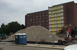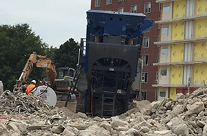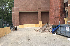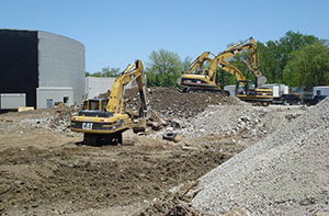 Construction project demolition recycling like the grinding of Irving Gym concrete into dense-graded
