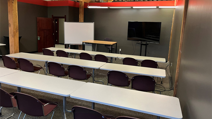 - 75” Monitor, Microphone, Wireless Internet, Whiteboard