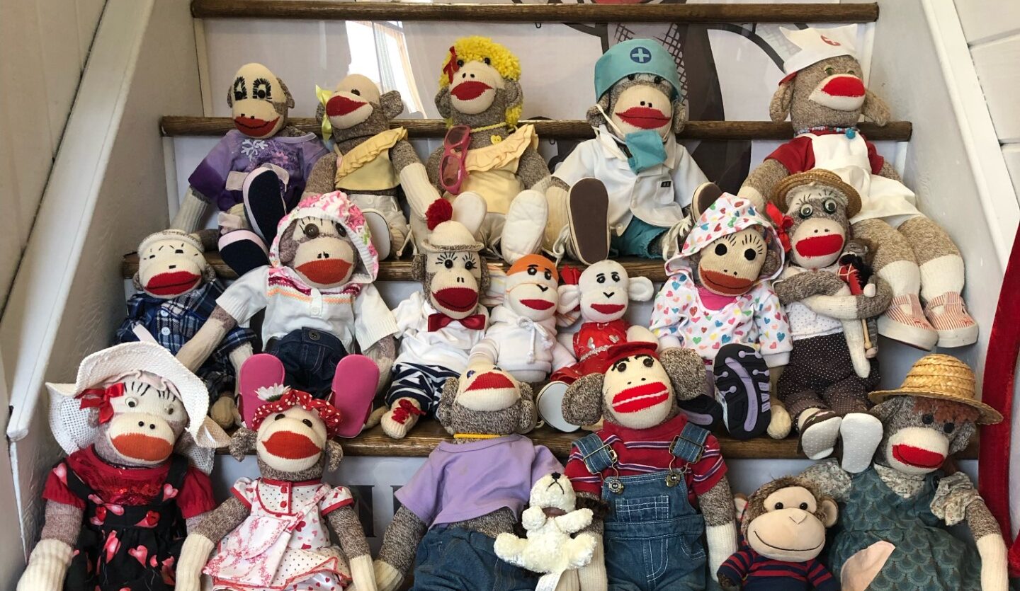 Claire Enk, Public History and English ’21, is the manager of the Sock Monkey Museum in historic downtown Long Grove, IL, which has over 2,200 vintage sock monkeys on display as well as exhibits about the history of sock monkeys and socks.