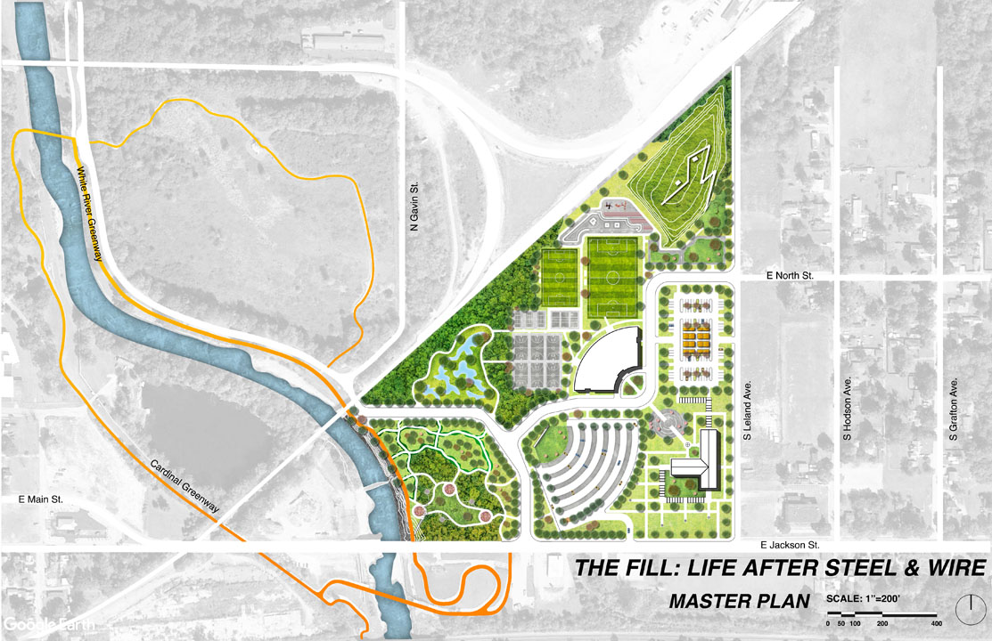 In the late 1800’s and early 1900’s the State of Indiana drained what was once the largest inland wetlands in the entire country: The Grand Kankakee Marsh. In doing so, they destroyed the natural landscape in favor of agricultural land, decimated native wildlife populations, and altered the functionality of the Kankakee River and its wetlands. The Kankakee River Revival Comprehensive Master Plan seeks to remedy the consequences suffered over a century ago, while also building a stronger, more resilient landscape for the future. This massive restoration and planning effort will serve both the users of the design and members of the nearby communities, while simultaneously strengthening habitat for native wildlife, building resiliency to annual flooding, and creating an identity for the area.