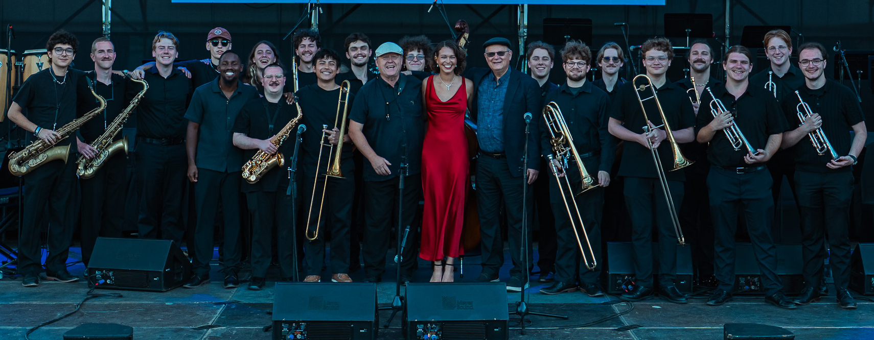 The band has performed at the National Theatre in Costa Rica (2019), Montreux Jazz Festival in Montreux, Switzerland (2017), toured Poland, Prague, and Berlin (2014), as well as China (2012). Jazz 1 has received numerous awards from over 20 appearances at the Elmhurst Jazz Festival in Chicago, the Kansas City Jazz Fest, and the National Collegiate Jazz Fest in Mobile, Alabama. The band presented an invited two-set performance at Dizzy's Club in New York City in 2022. Pictured above is the band from their 2026 tour of Chile.