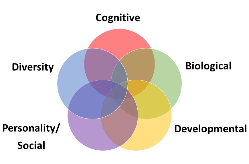 The Master of Arts in Psychology Science is a two-year program designed to prepare students for doctoral programs or employment in research and/or academic-related settings by delving deeper into the core psychological domains shown in the graph. As well as by providing extensive training in Research Methods and Statistics.