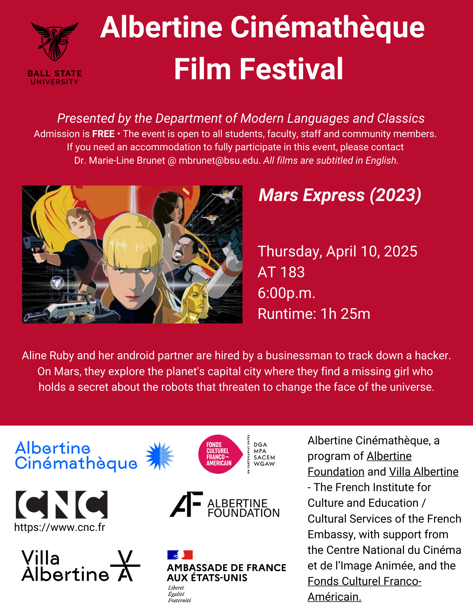 If you need an accommodation to fully participate in this event, please contact Dr. Marie-Line Brunet: mbrunet@bsu.edu.