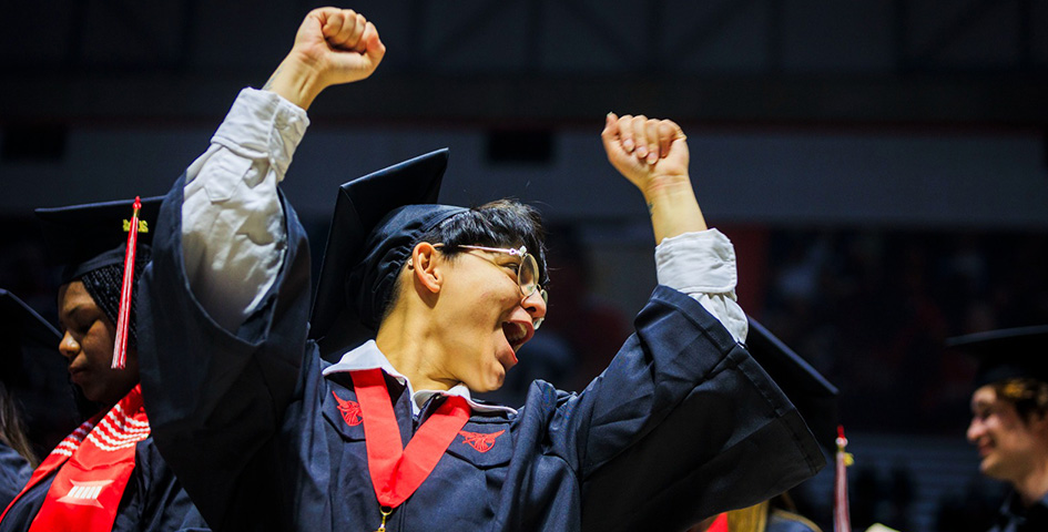 Ball State University conferred approximately 1,200 doctoral, specialist, master’s, and baccalaureate degrees in its Fall 2024 Commencement ceremony on Saturday at Worthen Arena.