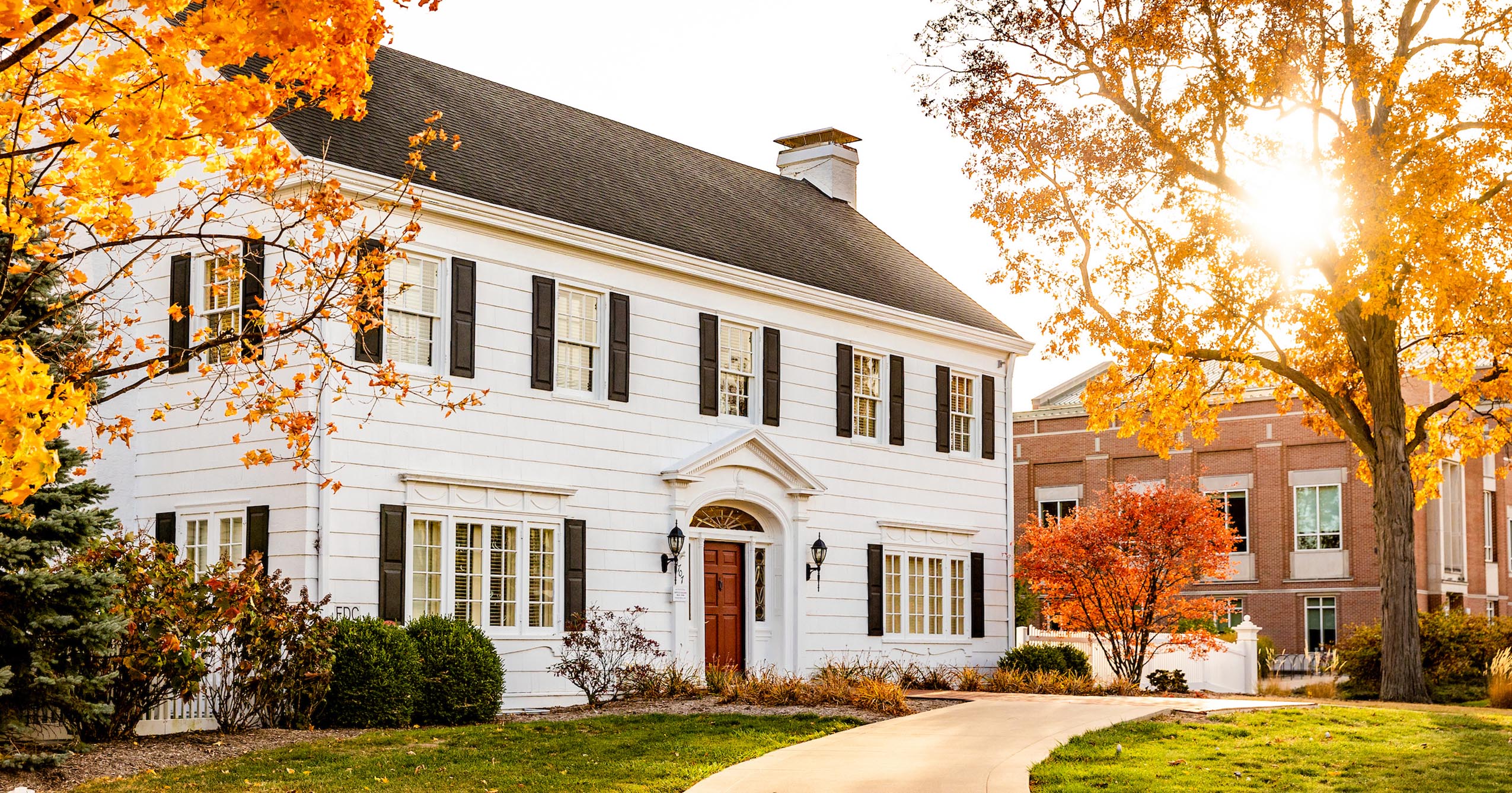 The two-story structure at 1707 W. Riverside Ave. was the longtime residence of Edmund F. and Virginia B. Ball. The stately Colonial home, known for its gracious center hall, white spindle stairway, and arched doorways, was the site of many gatherings hosted by the Ball family. In 2009, following a $1.3 million renovation supported in part by the Edmund & Virginia Ball Foundation, the residence was transformed into the headquarters of Ball State’s Honors College, preserving much of its original architectural character while adapting it for academic and student use.