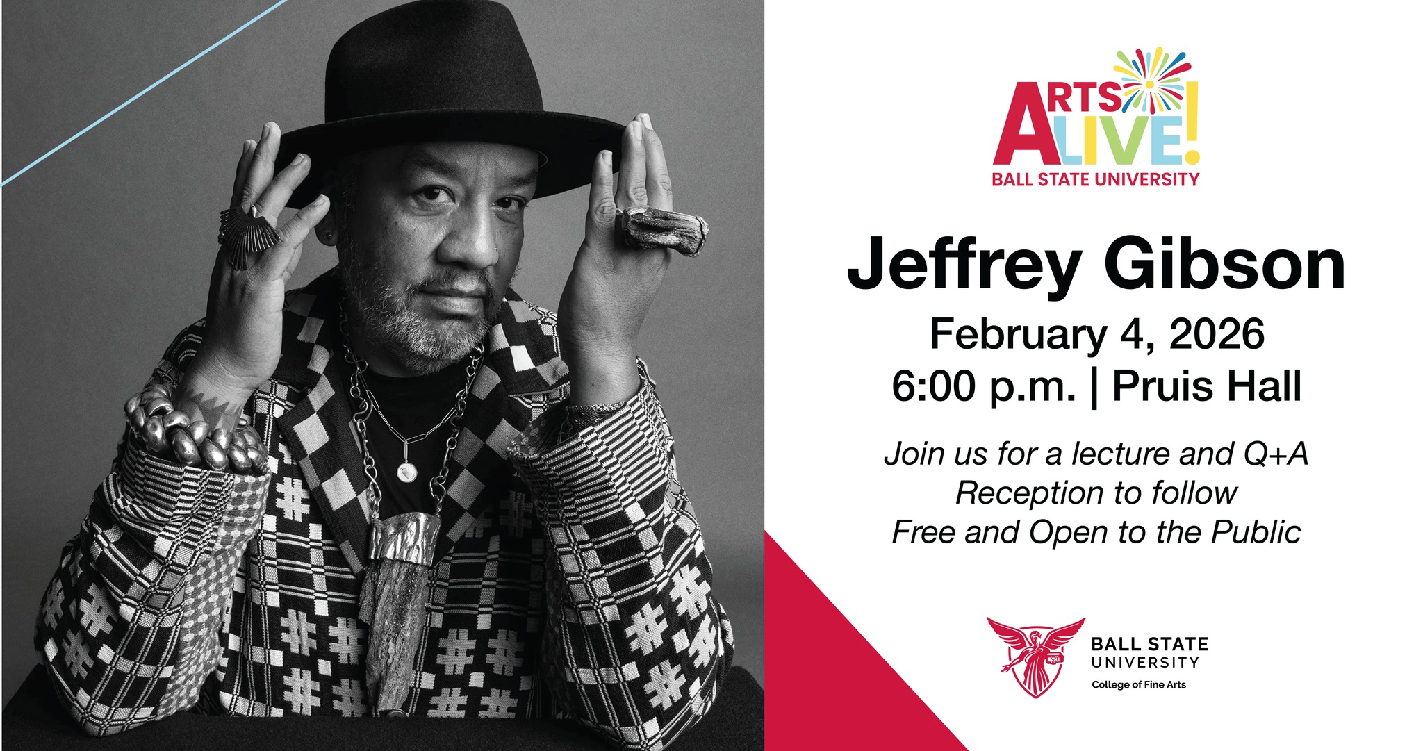 Ball State University’s Arts Alive! series continues with an on-campus presentation followed by a Q&A with artist Jeffrey Gibson at 6 p.m. on Wednesday, Feb. 4, at Pruis Hall. The event will conclude with a reception and light refreshments.